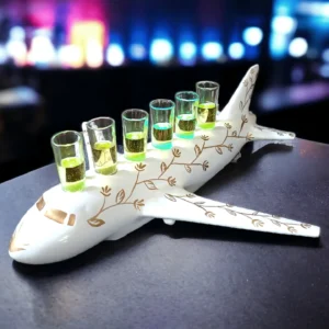 6 Shot White Airplane Tequila Flight Tray with Stunning Lights
