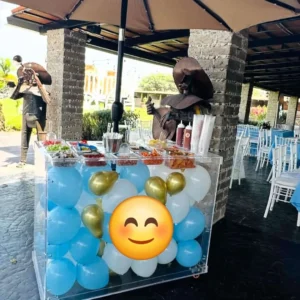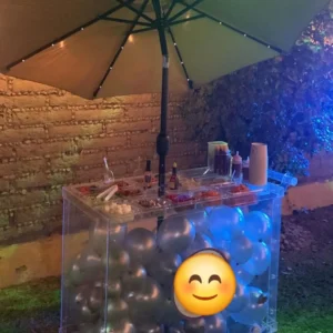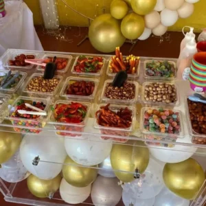 This Acrylic snack Cart with lights comes with LED lights and perfect showcase desserts, pastries, bread, cookies, snacks, charcuterie etc . This cart is a showstopper for any event or business.