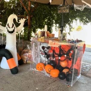This Acrylic Cart is a perfect investment for entrepreneurs looking to start or expand their business. Its sleek acrylic display case enhance visibility, increasing customer attraction. Easy to maneuver thanks to its design and swivels casters, the cart is built for both indoor and outdoor use. Whether for pop-up events or brick-and-mortar stores, this cart makes selling snacks a breeze
