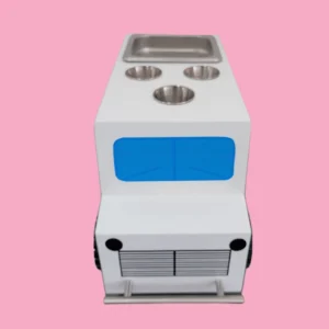 This adorable Table Top Snack Cart with 2 Containers is perfect for holding ice cream, snacks, and toppings. With two large containers for flavors and four smaller containers for toppings, this cart adds a fun and creative way to serve ice cream at your business or events. It’s sure to be the talk of the party or an attention-grabber at your establishment.