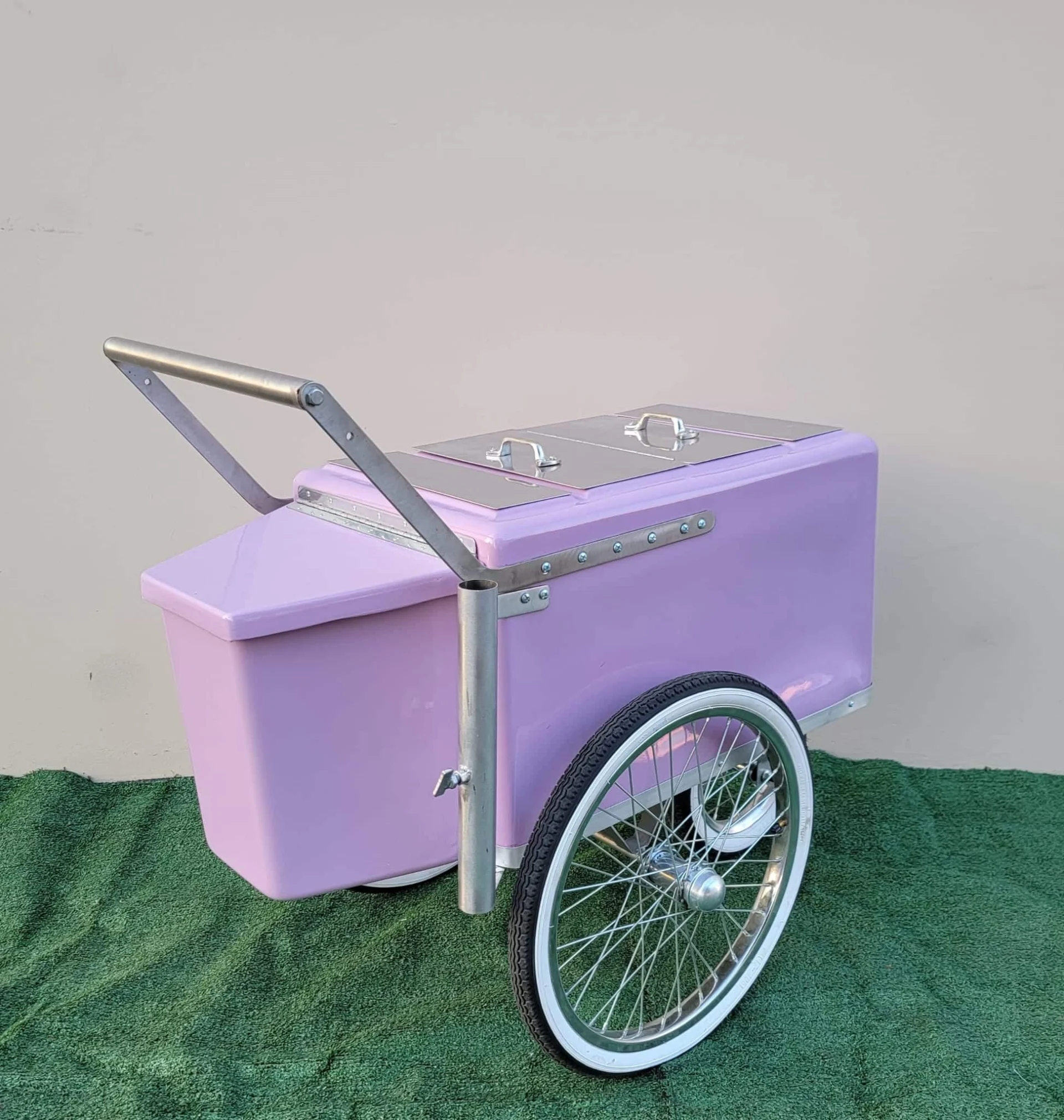 Popsicle Cart Small Size,Ice Cream cart – Purple with stainless steel trim and bicycle Tires,