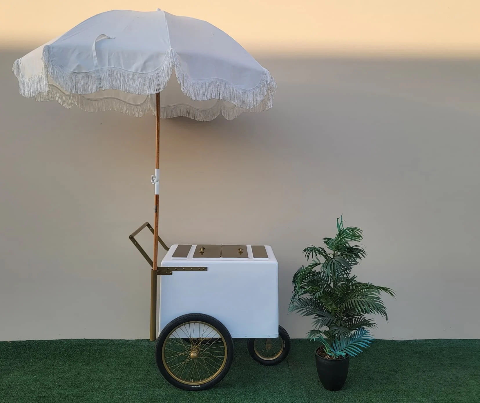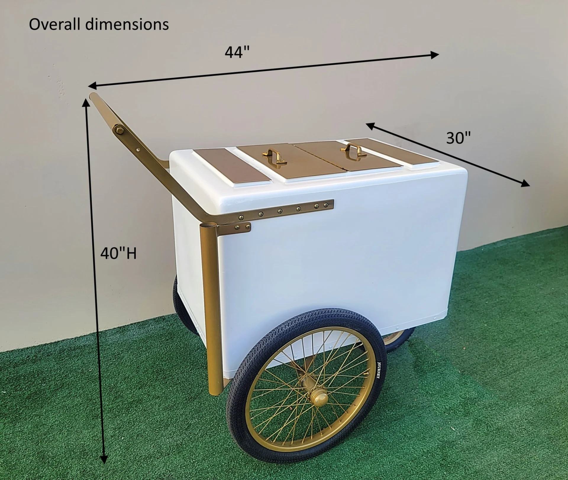 Popsicle Cart with Gold Trim Standard Size with Bicycle Tires – White/Gold