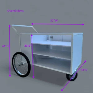 The Display Cart is ideal for a wide range of events, including church picnics, farmers’ markets, pop-up events, public events, street fairs, amusement parks, catering gigs, and more. It’s perfect for serving treats, cakes, sweets, and desserts at special events like weddings, quinceañeras, corporate gatherings, and pool parties. Maximize your business potential by offering something unique and eye-catching!