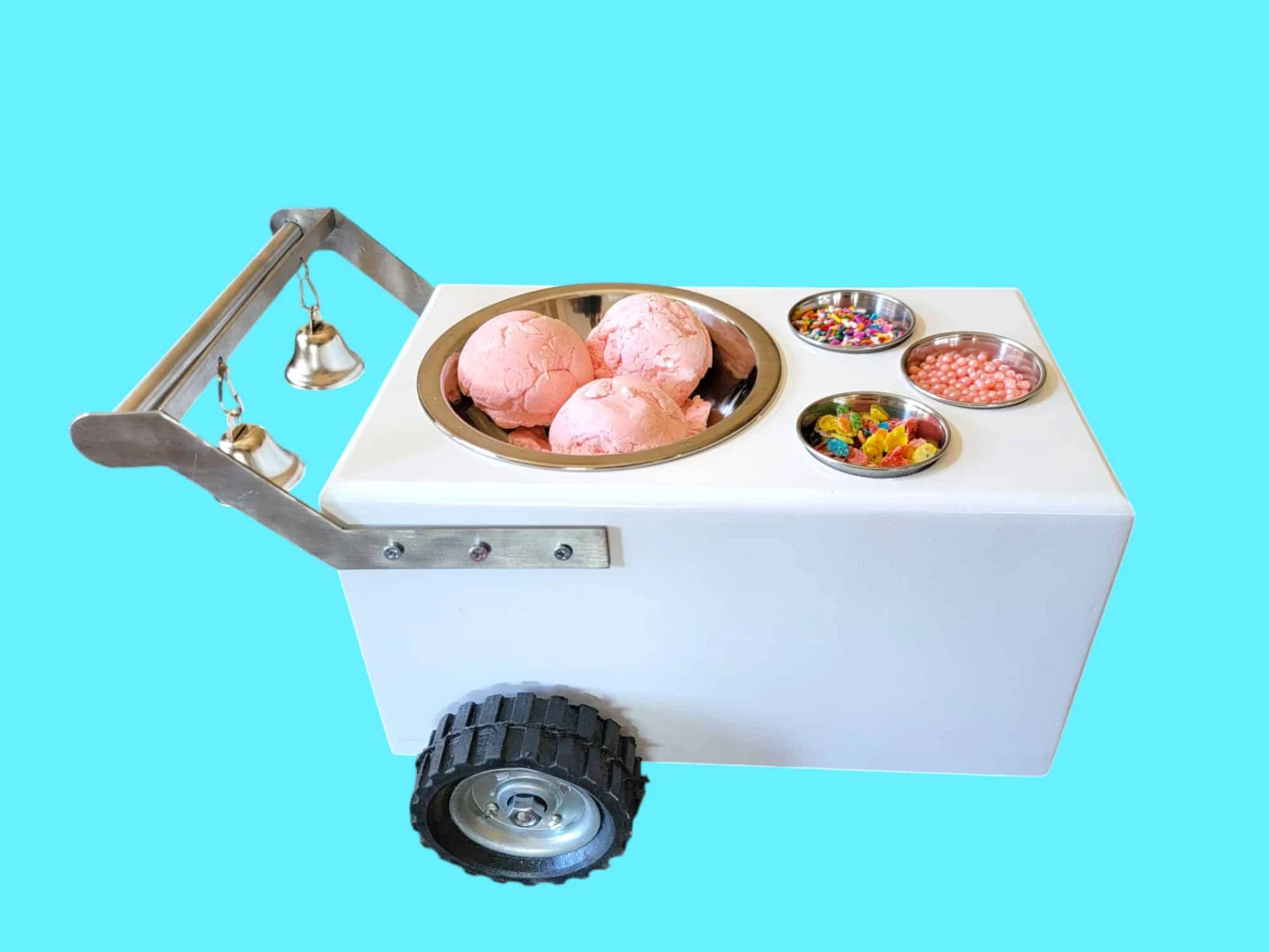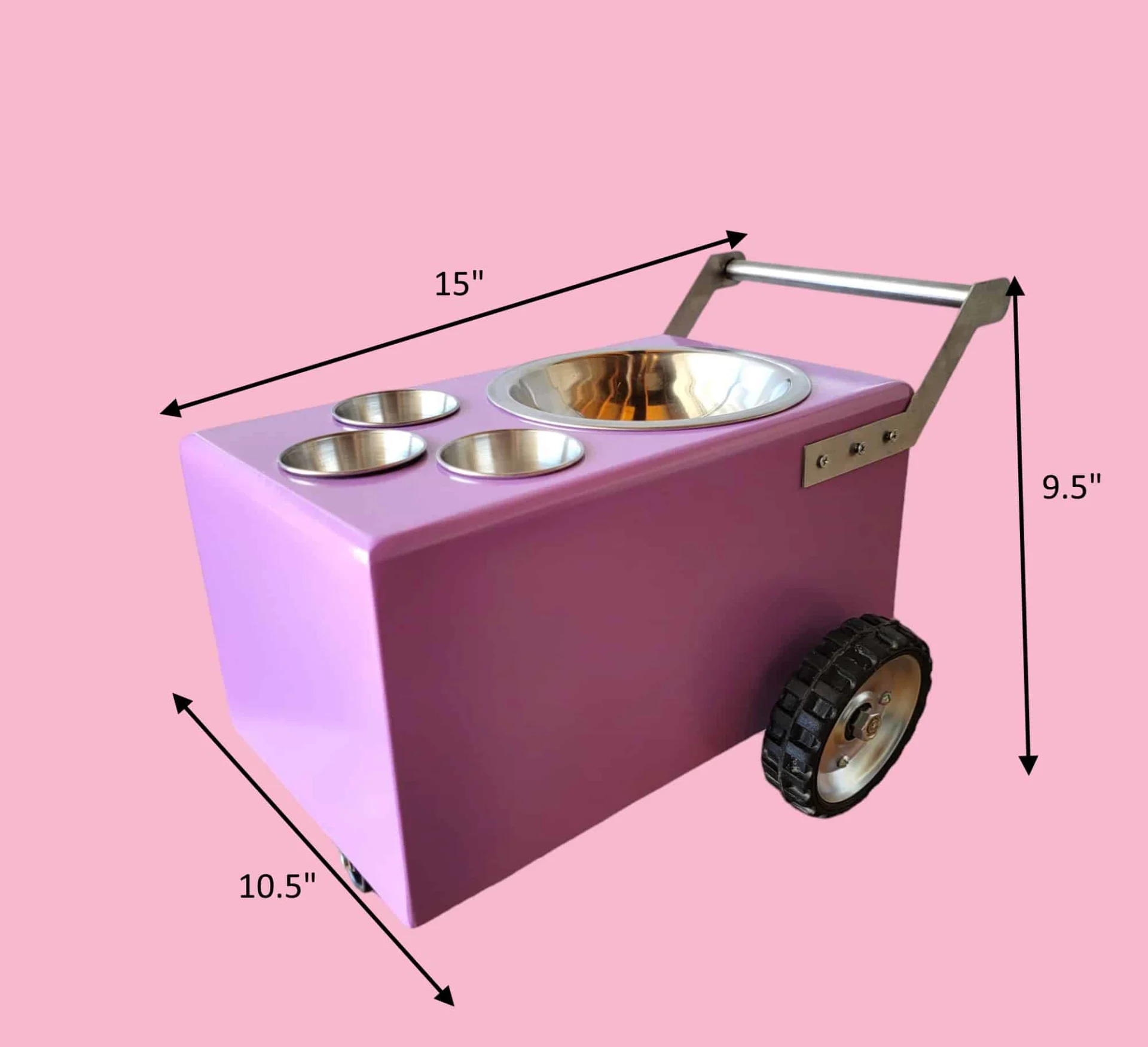 This baby-sized table top cart is an excellent addition to your business, whether it’s an ice cream shop, churro cart, or catering service. It’s also great for personal use at birthday parties, summer events, or even as a unique gift. Add bells for an additional $6 to grab even more attention and make your cart stand out!