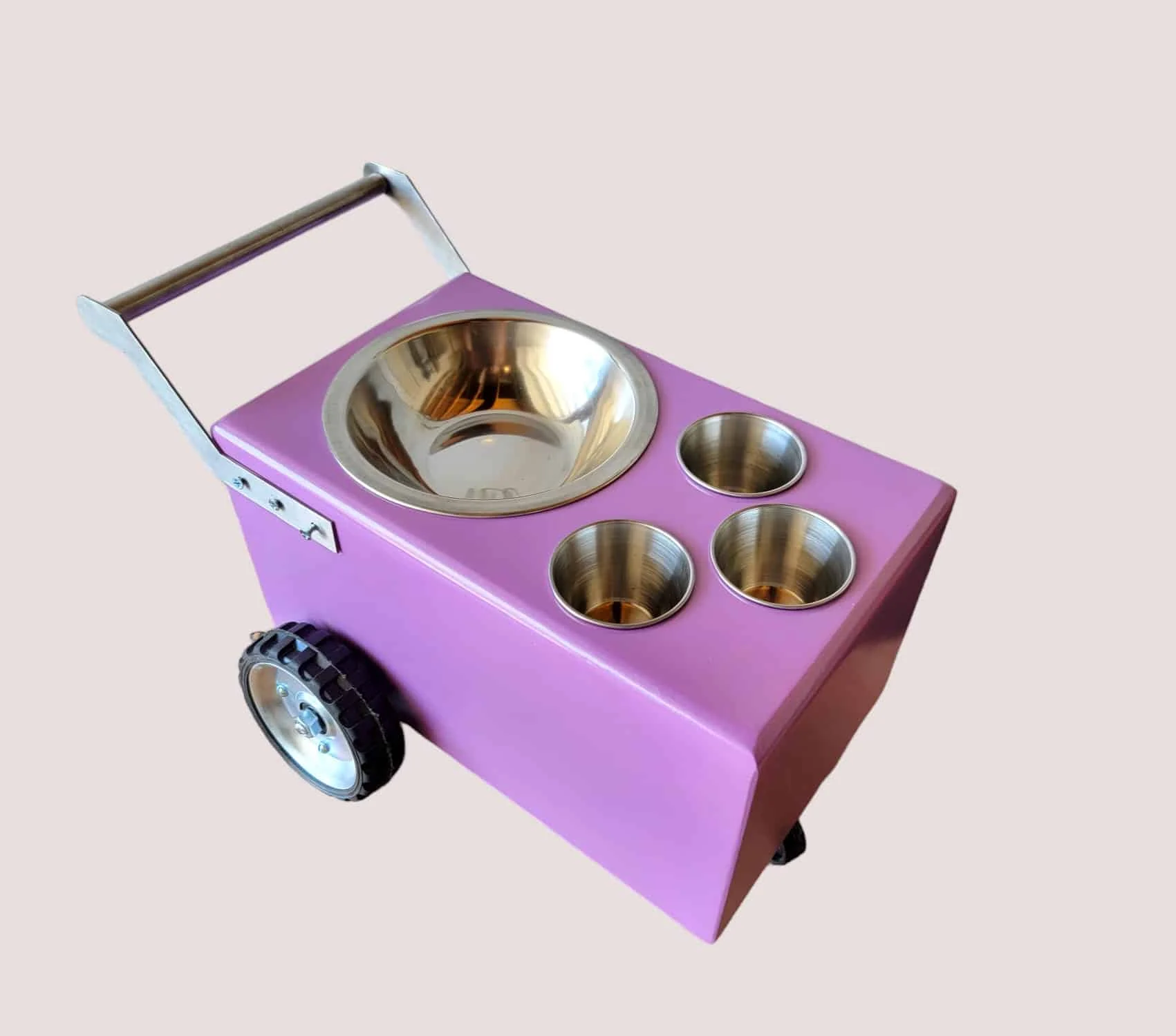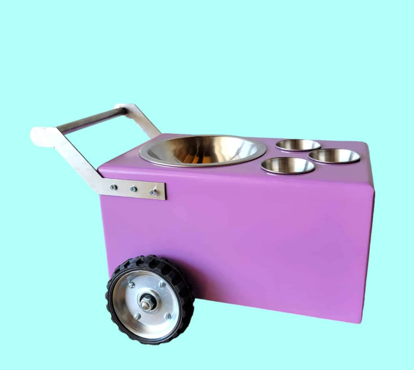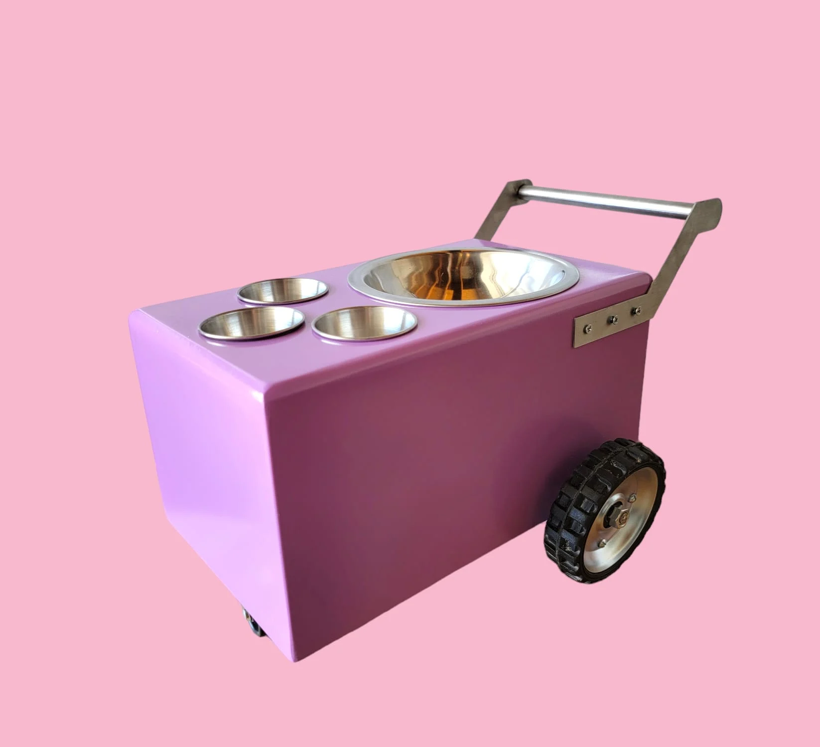 Want to attract more people to your business, see more happy faces, and increase your revenue? The Small Table Top Ice Cream Cart / Snack Cart with paleta cart handle is the perfect addition to any business or home celebration. Ideal for displaying and serving snacks like churros, cake, ice cream, or corn, this cart offers versatility, charm, and functionality.