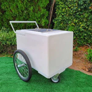 This versatile Paleta cart is well-insulated, capable of storing up to 400 popsicles or 3 three-gallon tubs, making it ideal for serving both hot and cold items. You can operate the cart efficiently using dry ice or cold plates, eliminating the need for electricity. With its sturdy 20″ pushcart wheels and front swivel caster wheel, you can easily transport the cart across different terrains.