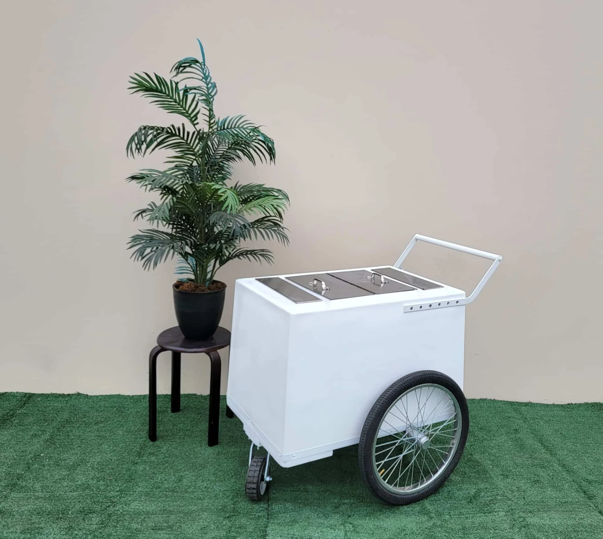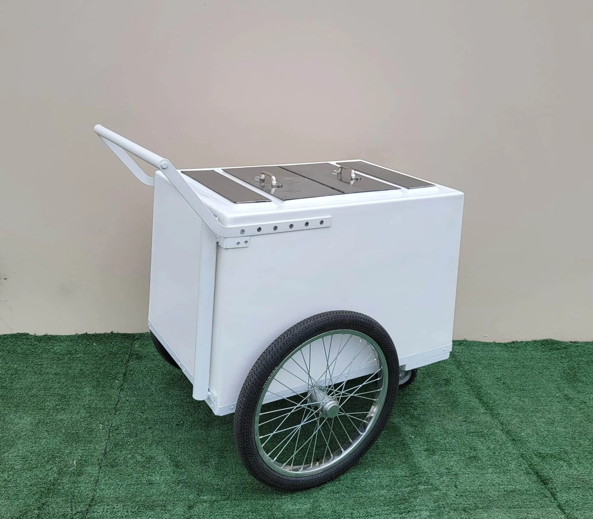 Standard Size White Popsicle Cart with 3 top openings,Bicycle Tires & white Trim
