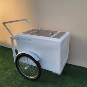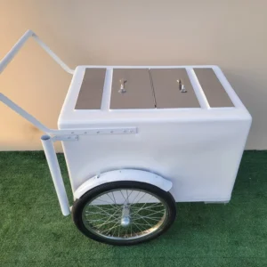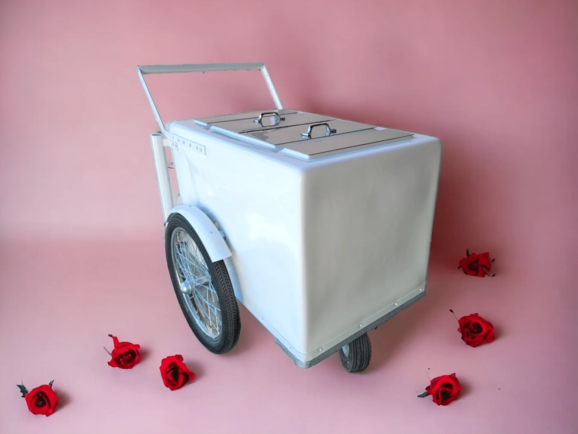 This popsicle cart offers the perfect combination of style and functionality. Whether you’re serving frozen treats at a summer party, farmer’s market, or street fair, its clean, white finish and durable build make it stand out. The cart’s insulated box ensures that your products stay cold or hot, while the lightweight frame and swivel caster wheels provide easy mobility, allowing you to maneuver it smoothly in any environment.