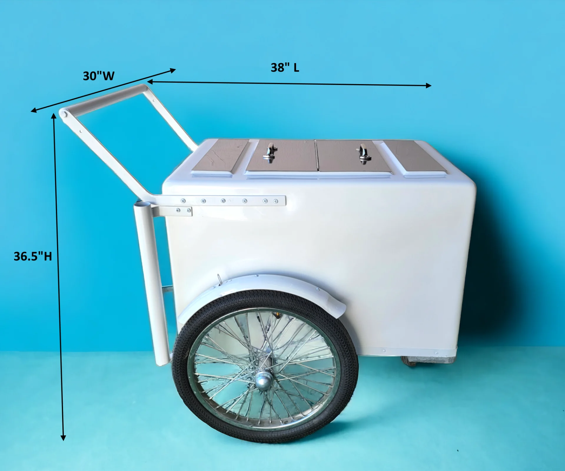 Standard Size Popsicle Cart with Fenders, Bicycle Tires, and 3 Top Openings (All White)