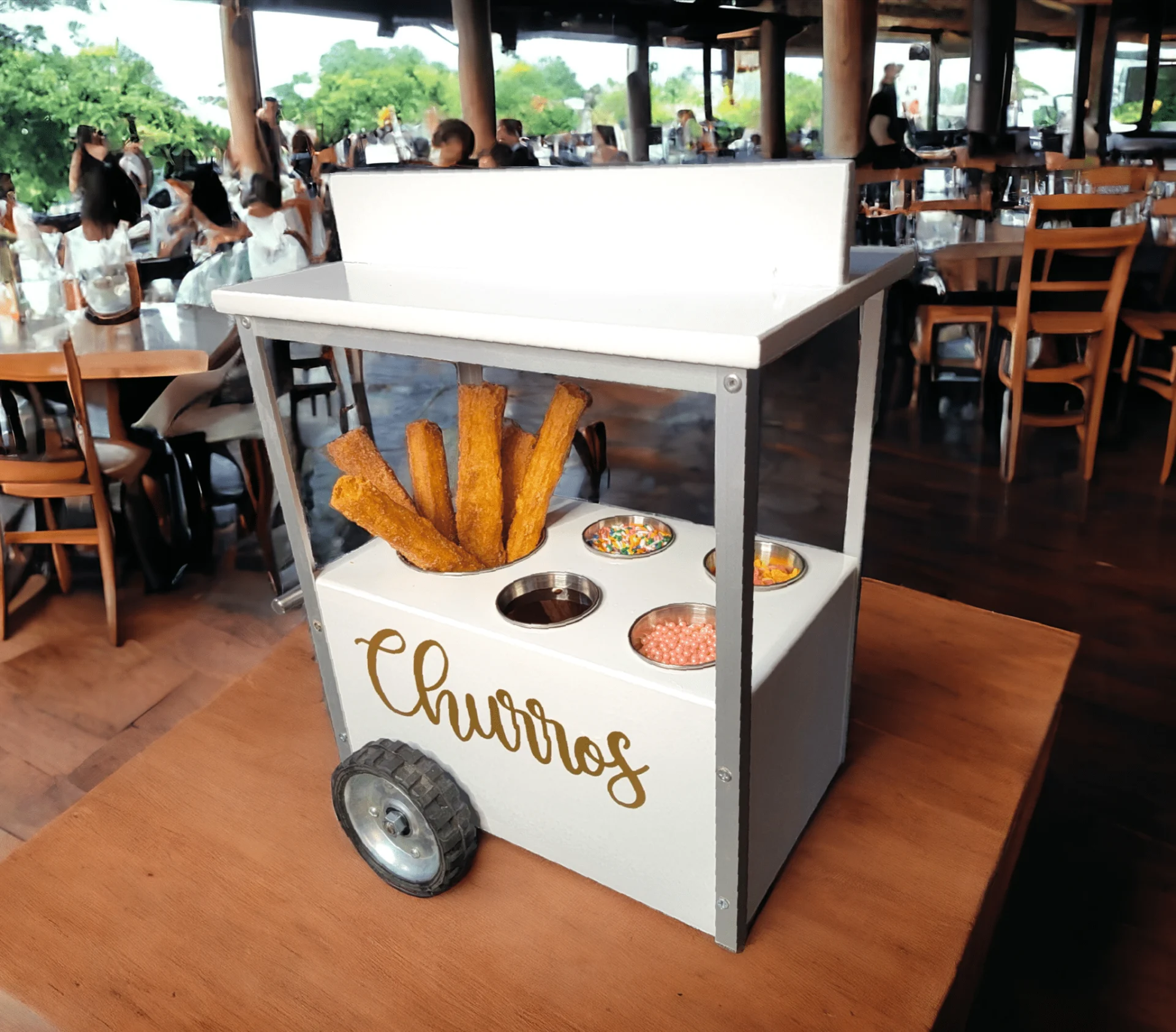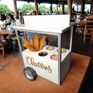 Make your snacks or classic churros stand out with this fun and unique Table-Top Churro Cart. Whether for business or personal use, this cart is ready to be customized with your business logo, event theme, or special occasion decor. It’s a fantastic way to elevate your food presentation and attract more customers!