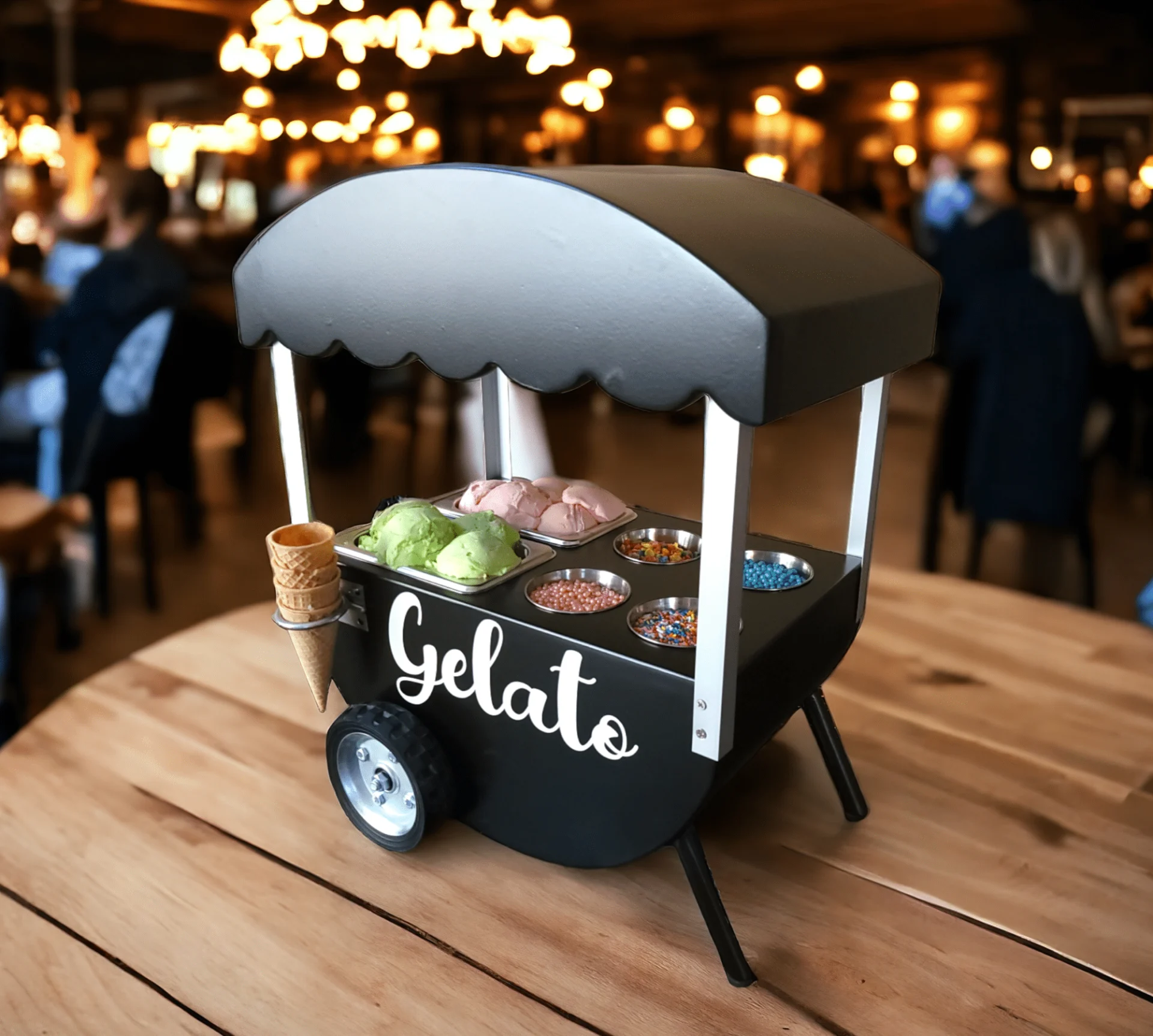 The Table Top Gelato / Ice Cream Cart is a fun and functional addition for restaurants, events, and catering services. Customizable, stylish, and designed to boost sales.