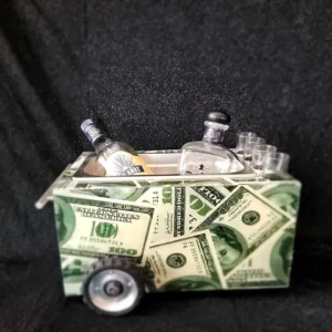 Tabletop Shot Glass Bar Cart – Dollar Bills & American Express Theme
