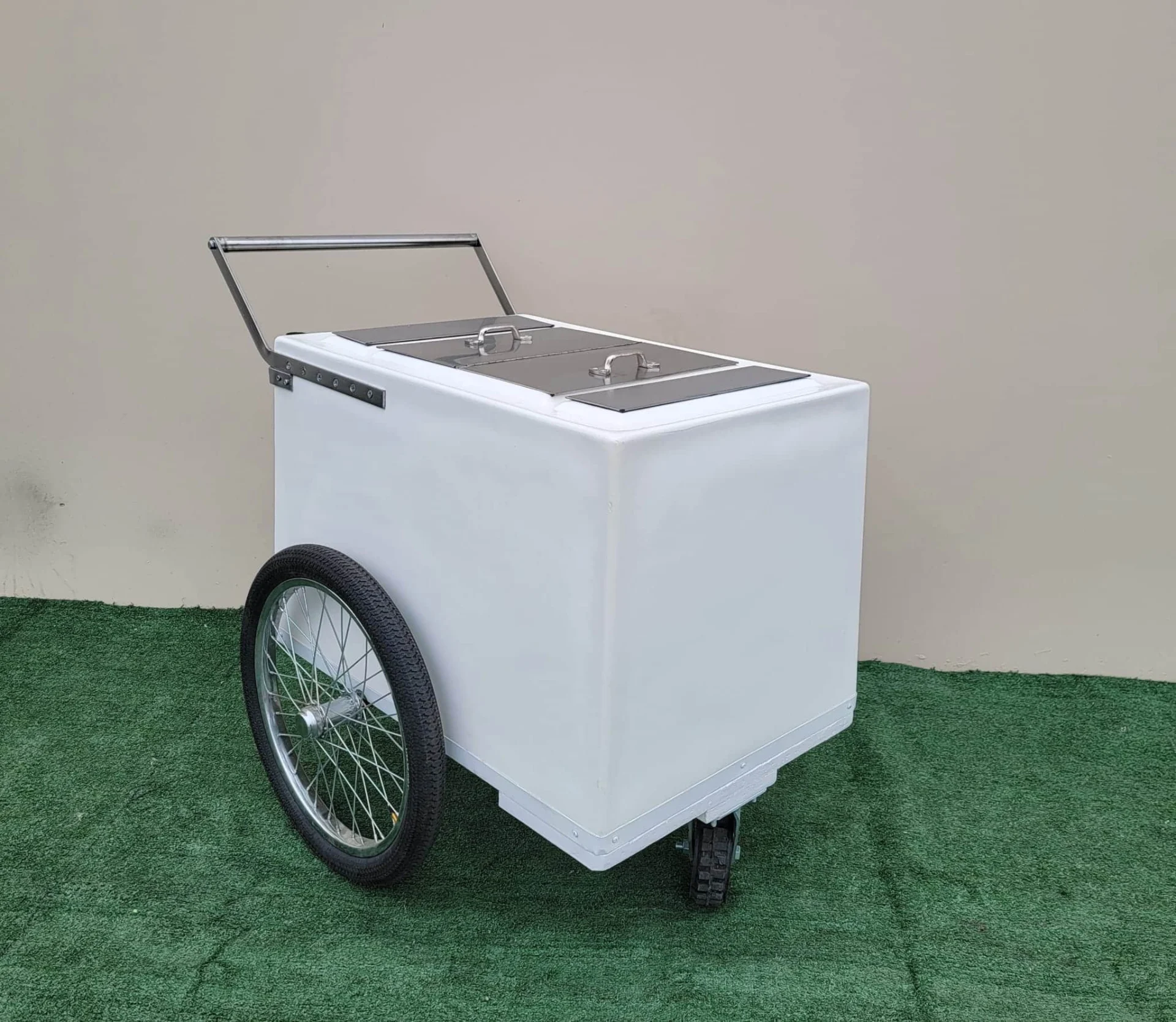 •No Electricity Required: The cart’s superior insulation keeps items cold or hot for extended periods, making it ideal for ice cream, popsicles, frozen desserts, or even hot beverages.