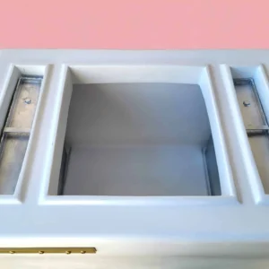 The Tall Standard Popsicle Cart with bicycle tires and chrome trim is perfect for events, pop-up stands, and catering. Stores up to 400 popsicles, requires no electricity, and is easy to maneuver.