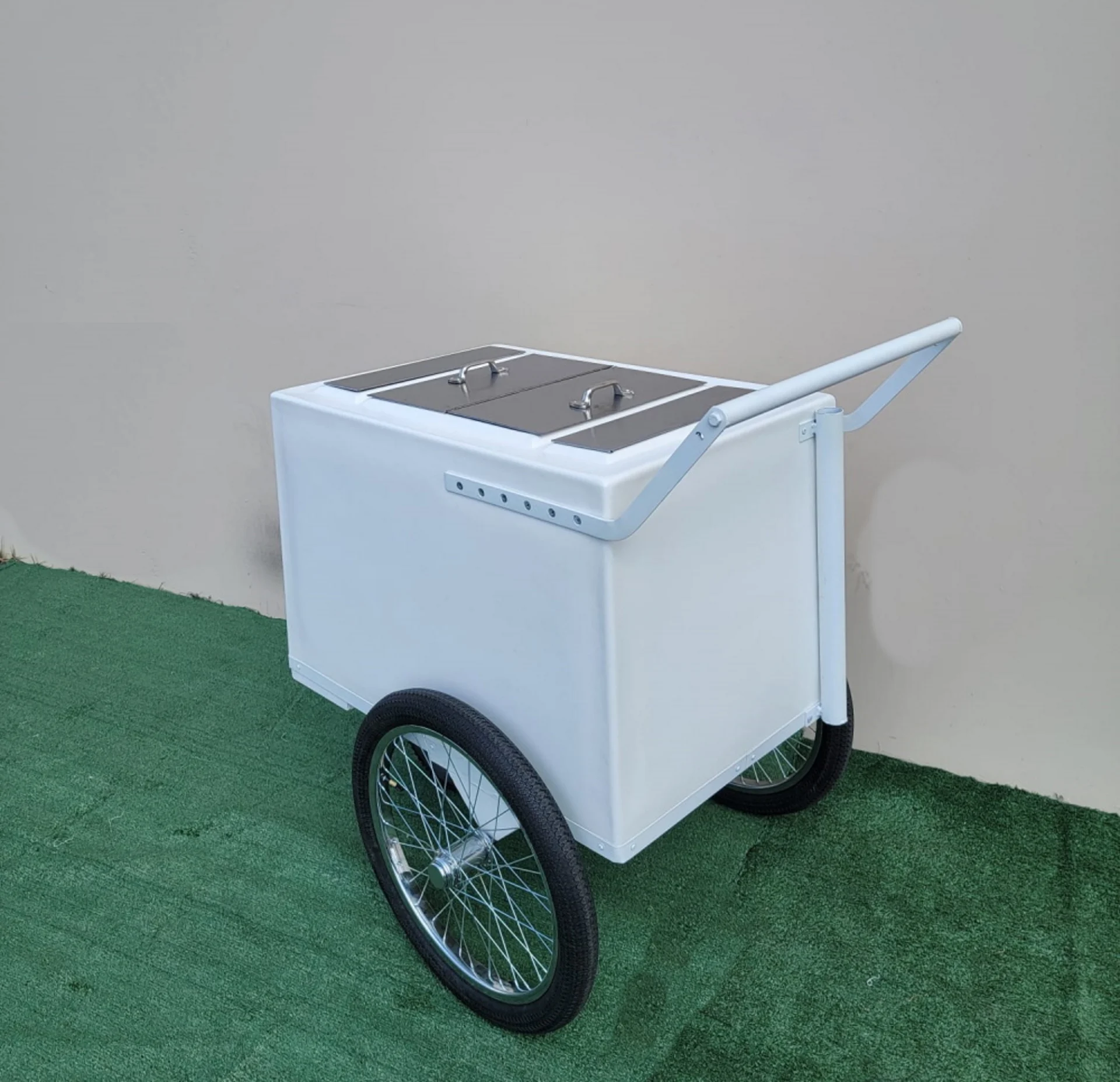 Tall Standard Popsicle Cart with Bicycle Tires & White trim, 3 top openings